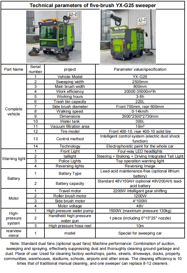 శుభ్రపరిచే సామర్థ్యం సాంప్రదాయ మాన్యువల్ క్లీనింగ్ కంటే 10 సార్లు, మరియు ఒక స్వీపర్ 8-12 క్లీనర్లను భర్తీ చేస్తుంది.